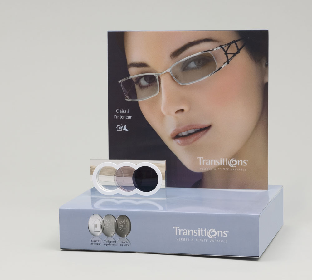 2) un présentoir en plexi avec 3 verres de lunettes